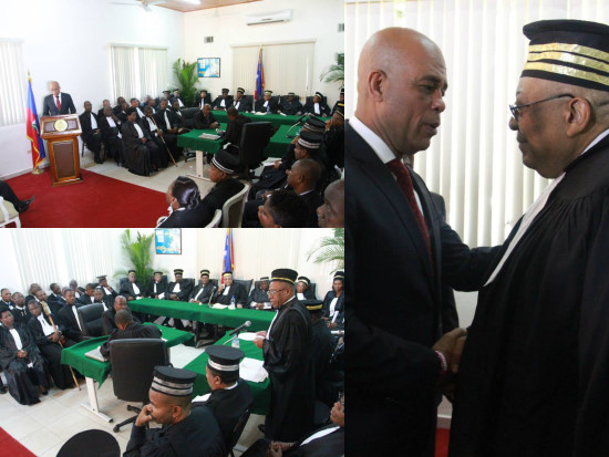 In addition, the President Martelly, called the civic consciousness of all professionals of Law and Justice, to make decisions based on the law and the Act. Affirming also that "The government is working hard to improve the lives of incarcerated prisoners and make disappear prolonged pretrial detention [...] My greatest wish is to work with you to recovery of Justice in strict observance of the principle of separation of powers. Voilà, Honourable Judges, intractable protector of the widow and fatherless, distinguished staff of tribunals what is our common responsibility to guarantee the stability and social peace," concluded the Head of State. HL/ HaitiLibre