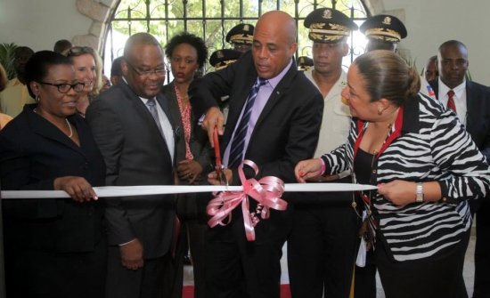 Monday, President Michel Martelly accompanied by his wife Sophia Martelly, inaugurated in Delmas 83 the new Office for the Fight against Gender Violence. This new structure of the Ministry for the Status and Rights of Women (MCFDF) aims to combat any act causing or likely to cause women and girls physical or psychological suffering whether in public or private life. In the presence of Marie Yanick Mézile , Minister for the Status and Rights of Women, of Me Jean Renel Sanon, the Minister of Justice and Public Security, of Josette Darguste, acting Minister of Culture, of the Ambassador United States in Haiti , Pamela White, and representatives of national and international partner organizations and associations, the Head of State reiterated the need that this struggle is conducted by all sectors of society "The mobilization of each and every one is essential for combating this scourge. But above all, the state must take responsibility and fight against impunity in the country in terms of gender violence. Thanks to the determination of the supervisory Ministry, to the advocacy of women's organizations, the commitment of the Ministry of Justice and the continued support of international partners, the National Police of Haiti (PNH) is now able to act to curb this scourge"
